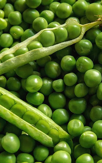 Garden Peas (Pisum Sativum) Appearance: Round fresh, and mature. Color mid to dark green, and tenuous Sweet. Seasonality: All year round.